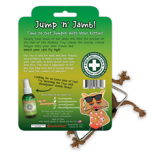 Meowijuana Jump 'n' Jamb - Get The Monkey Off Your Back - Refillable Catnip Swinging Toy
